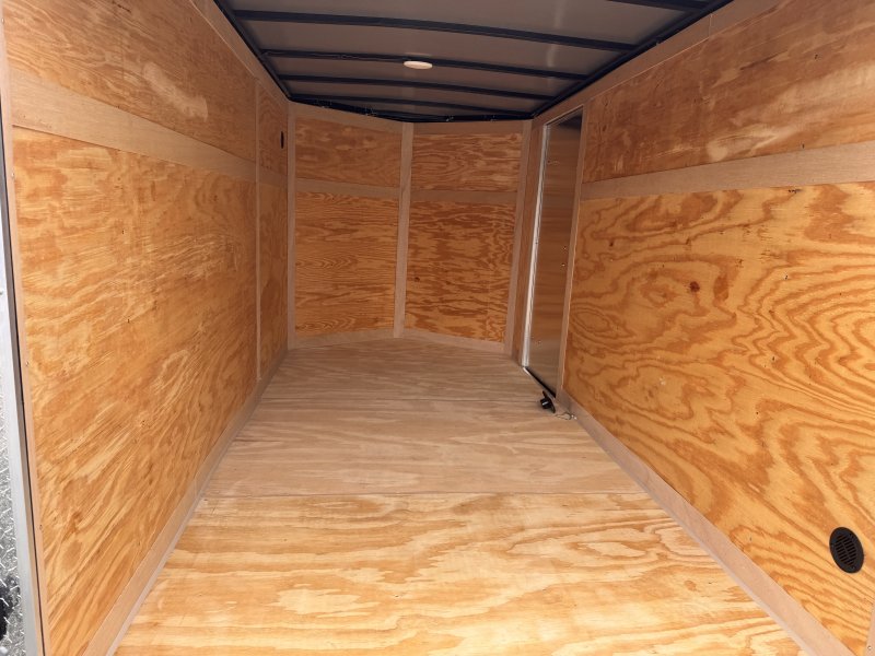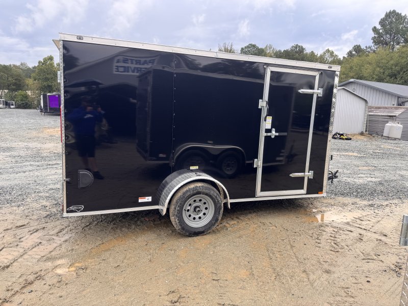 “This v-nose 6×12 enclosed cargo trailer has a single non-braking idler axle with a rating of 2,990 lb GVWR. This type of trailer is ideal for light-duty or residential tasks. This model has a side door, a rear barn door, and a 2000 lb jack.
