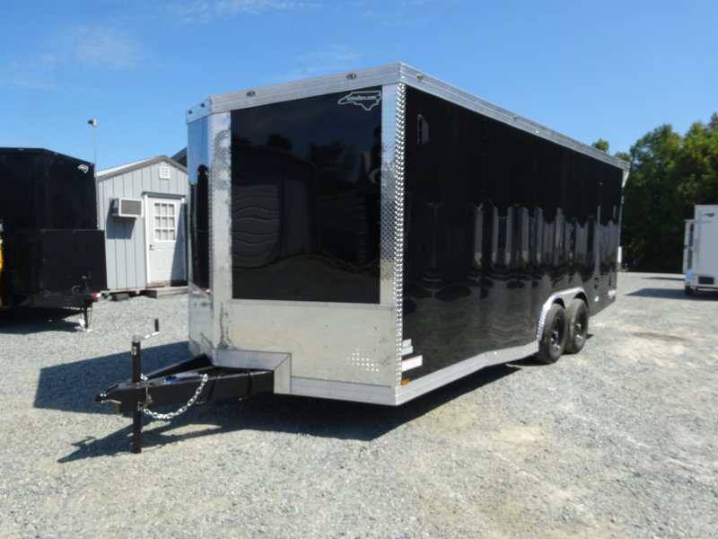 “This v-nose 8.5×20 enclosed cargo trailer has a tandem axles with brakes with a rating of 10,000 lb GVWR. This Pro Series model has a side door, a rear ramp door, 0.080″” polycore sides, a slant v-nose, rear wing, and a 2000 lb jack.