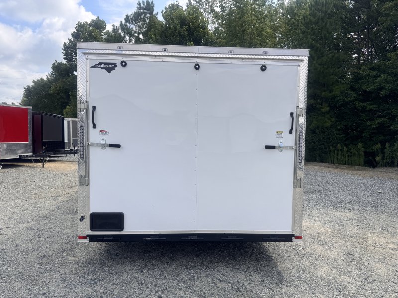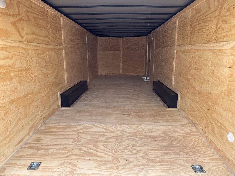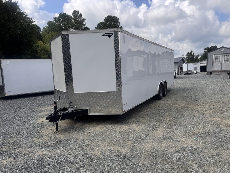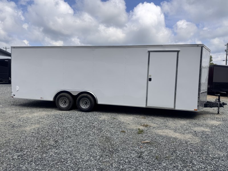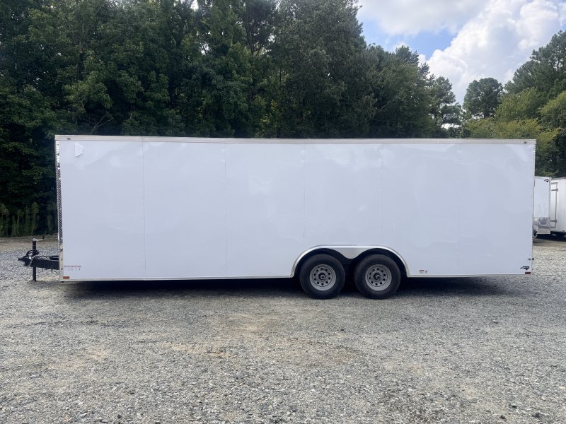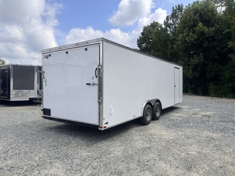 This v-nose 8.5×24 enclosed cargo trailer has a 6’6″ interior height, tandem axles with brakes with a rating of 10,000 lb GVWR. This type of trailer is ideal for light-duty or residential tasks. This model has a side door, a rear ramp door, and a 2000 lb jack.