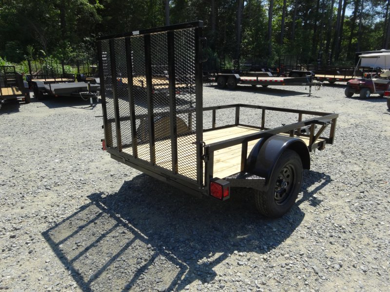 “This standard 8-foot length, entry-level landscaping/utility trailer has a 60″” width and 48″” gate. GVWR rating of 3000 lb. Top rail, wood deck.