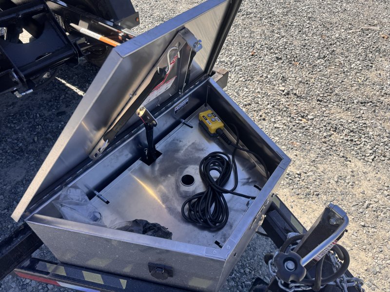 This standard dump trailer has low profile 24″ sides. This unit has a double eye spring suspension, pump with deep cycle battery inside lockable security box, and a 20′ wired hand remote.