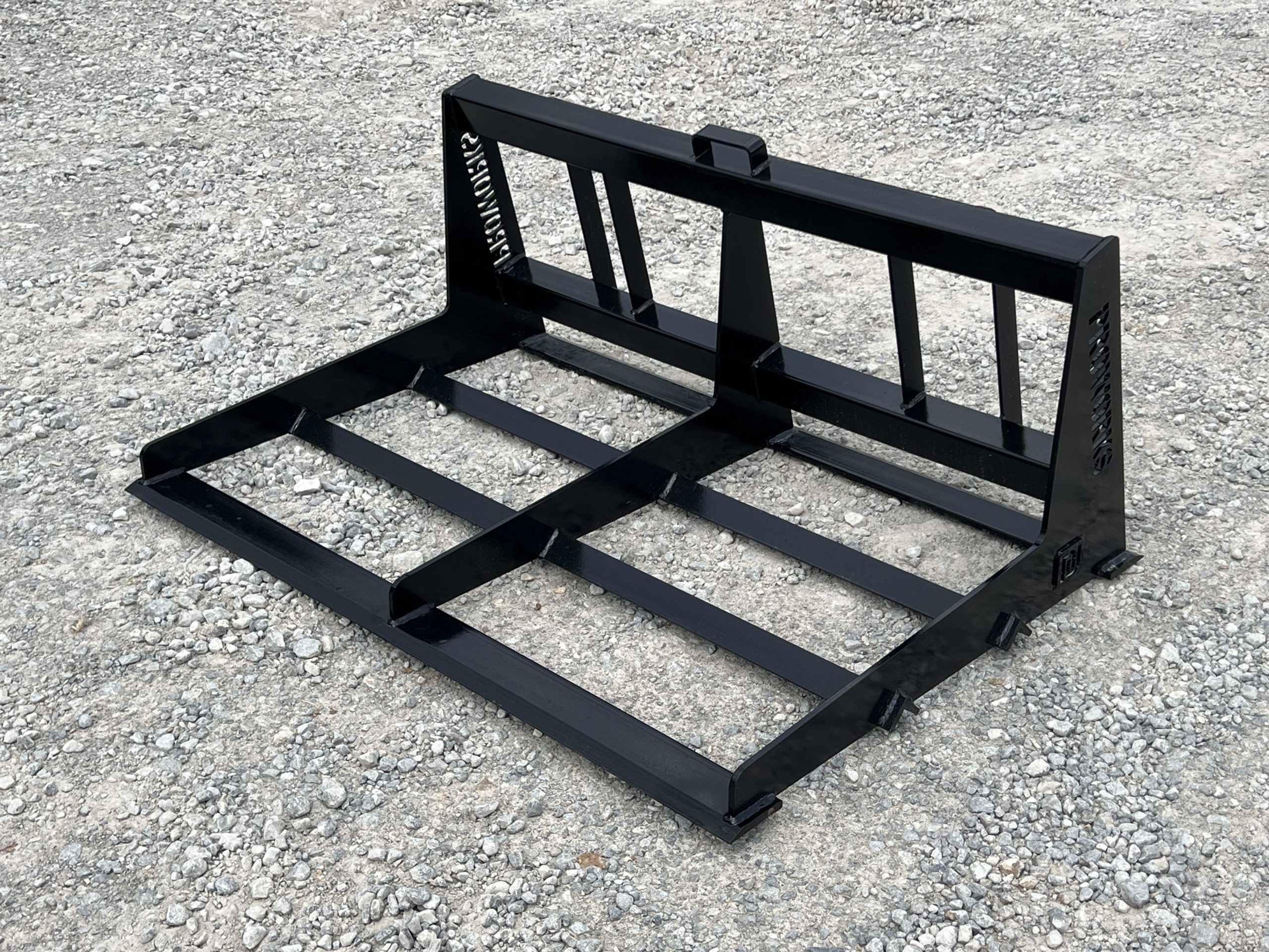 This is a brand new 54″ wide heavy duty land leveler attachment for a mini skid steer loader with the full size Bobcat MT mounting system. The land plane attachment is great for quick and accurate grading. Unit has cutting edges, both front and back, allowing cutting hard surfaces and heavy angled tines in between to sift and spread dirt or gravel to low areas. It is ideal for grading stone driveways or roads and perfect for seed bed preparation, as well as concrete preparation grading. This will fit Bobcat MT50 MT52 MT55 453 463 and S70 Loaders.