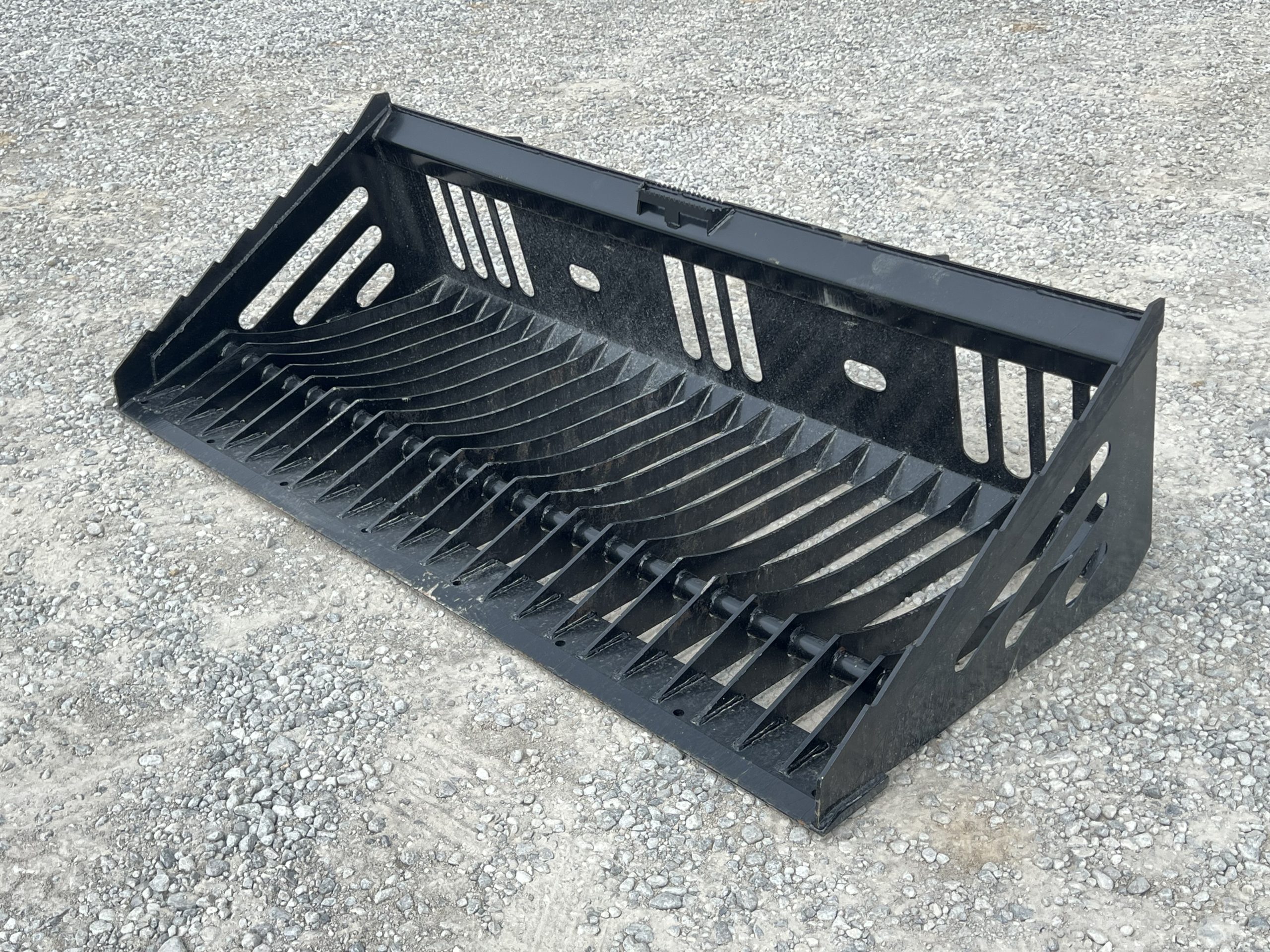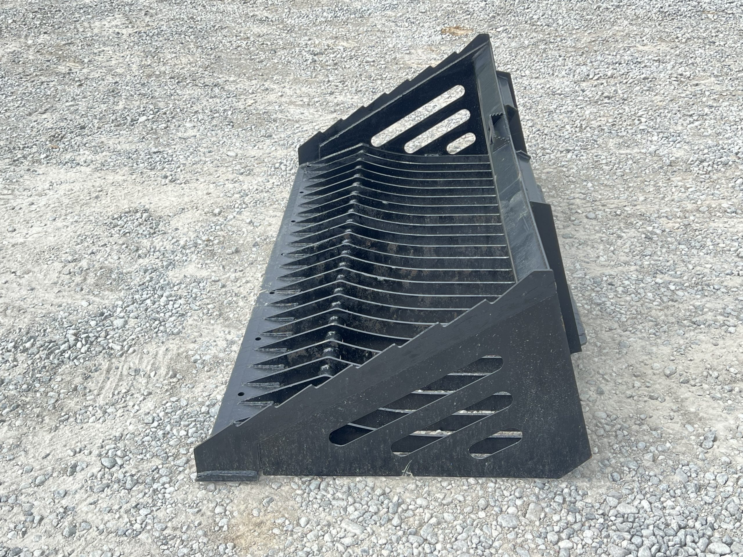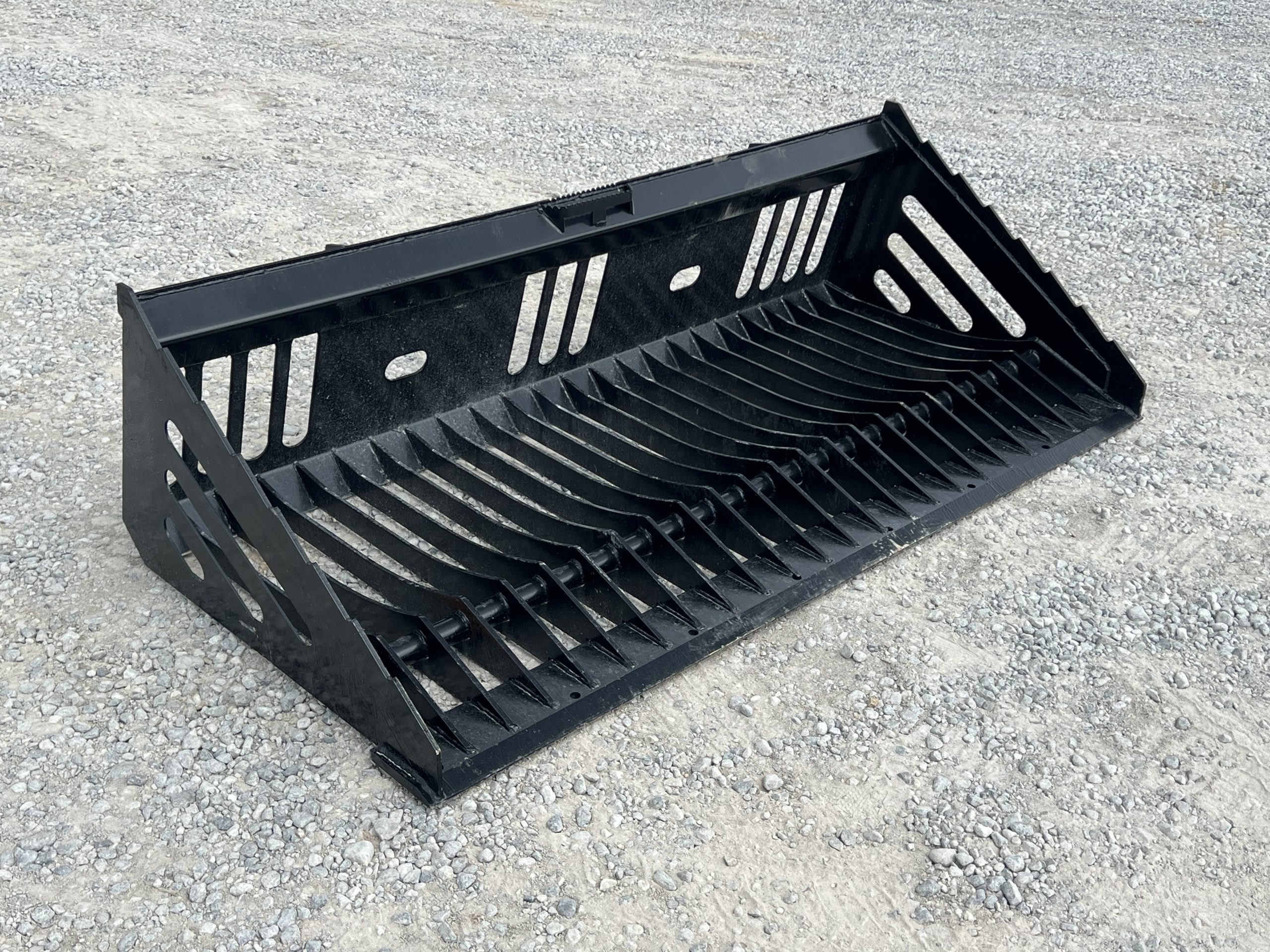 This is a new 80″ wide heavy duty skeleton / rock bucket. This attachment has the skid steer quick attach mounting system to work on a variety of wheeled and track loaders as well as newer tractors. This bucket makes sifting and sorting through a variety of soil types a breeze!