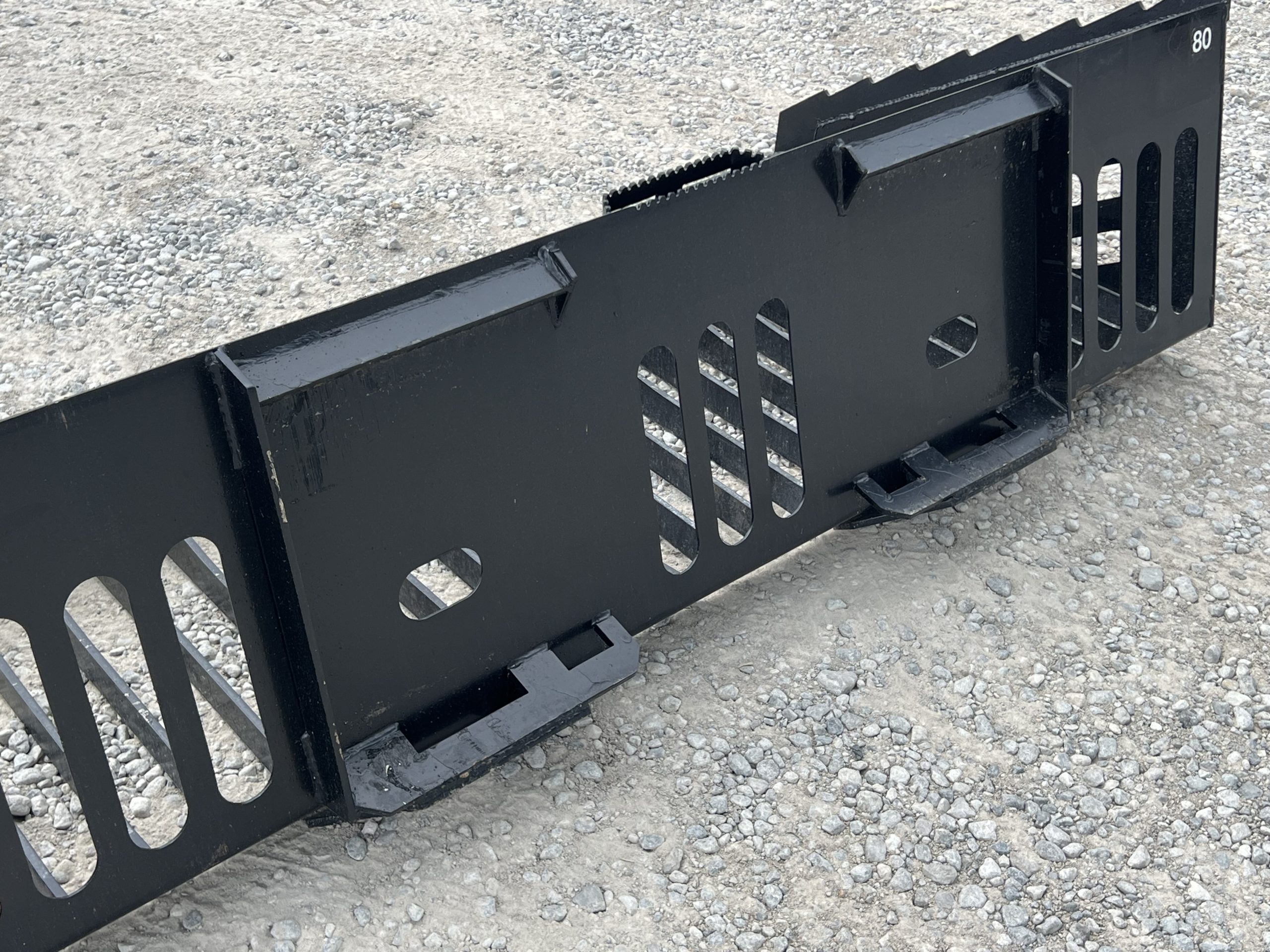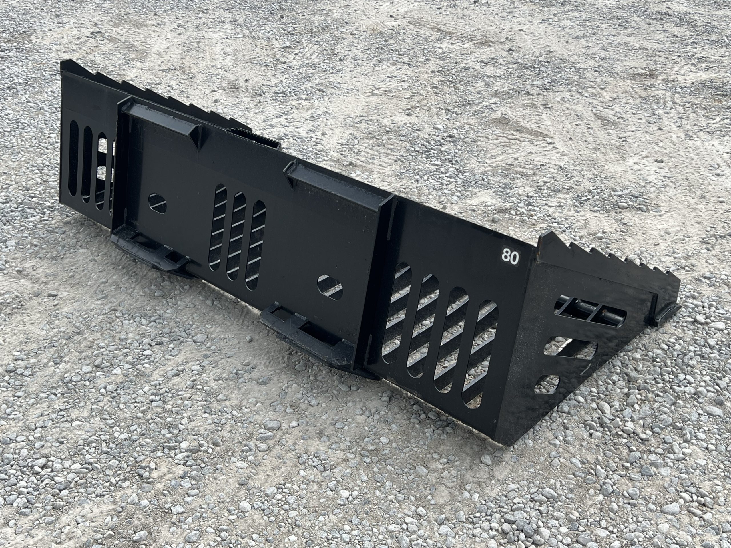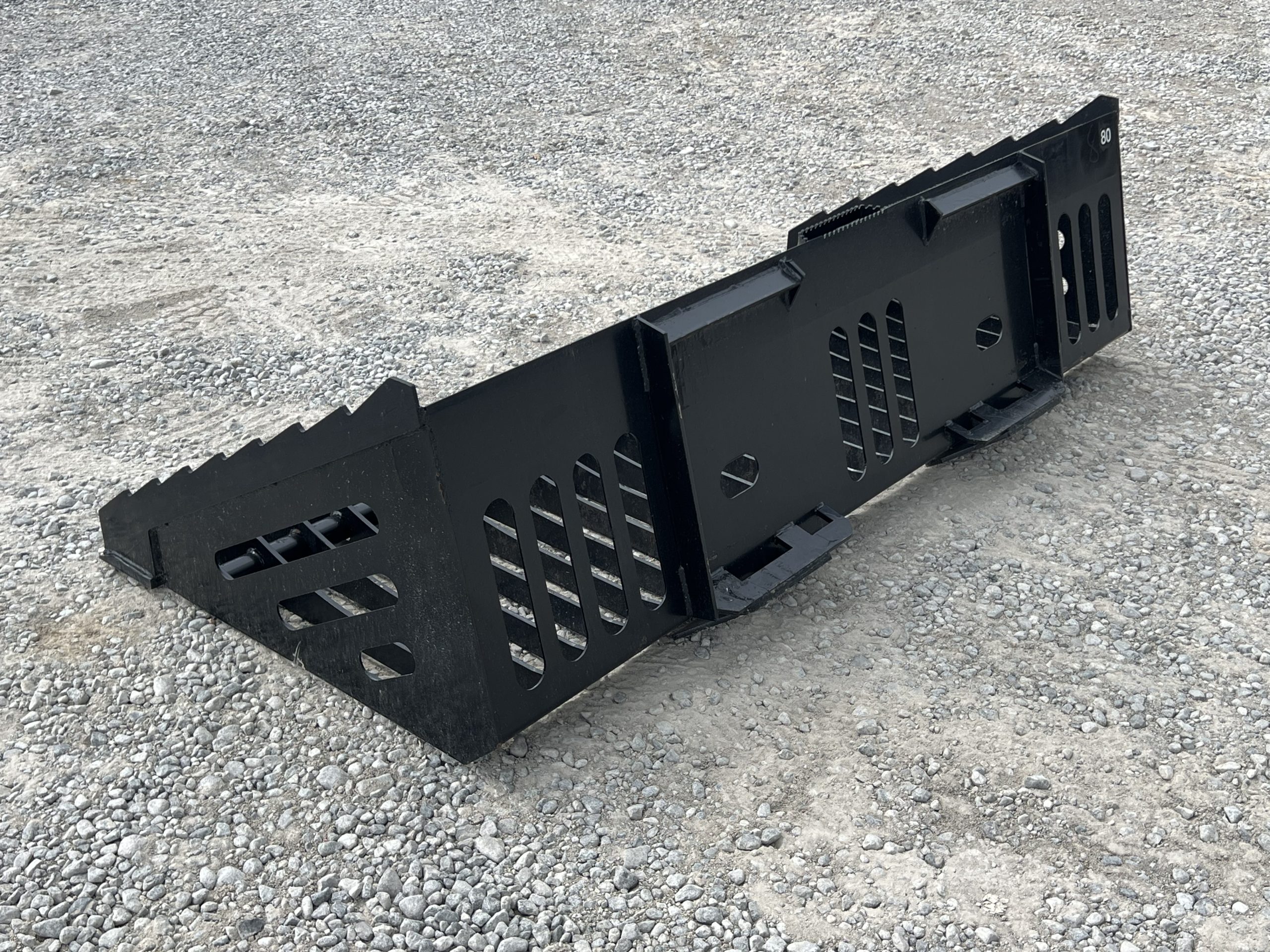 This is a new 80″ wide heavy duty skeleton / rock bucket. This attachment has the skid steer quick attach mounting system to work on a variety of wheeled and track loaders as well as newer tractors. This bucket makes sifting and sorting through a variety of soil types a breeze!