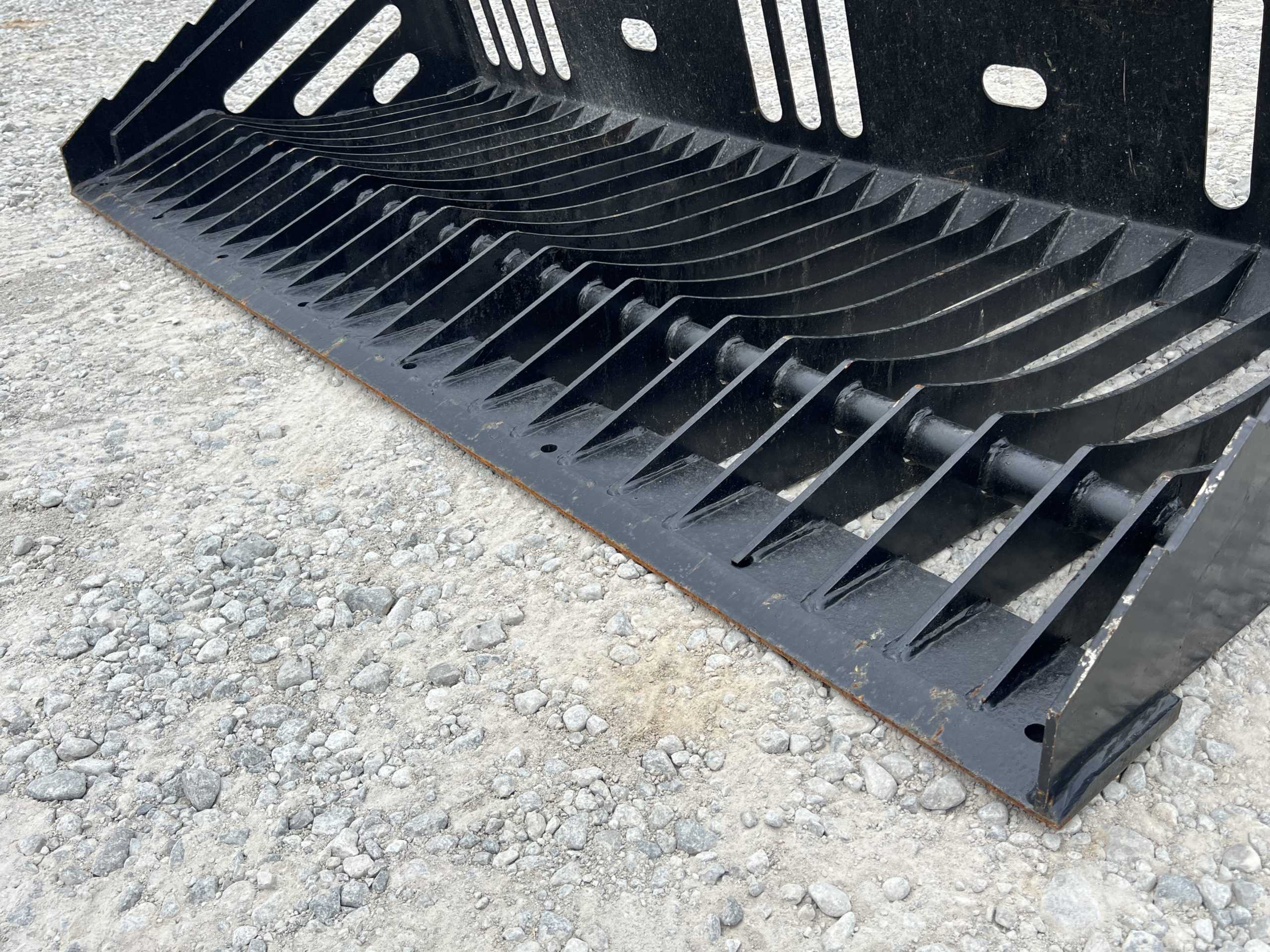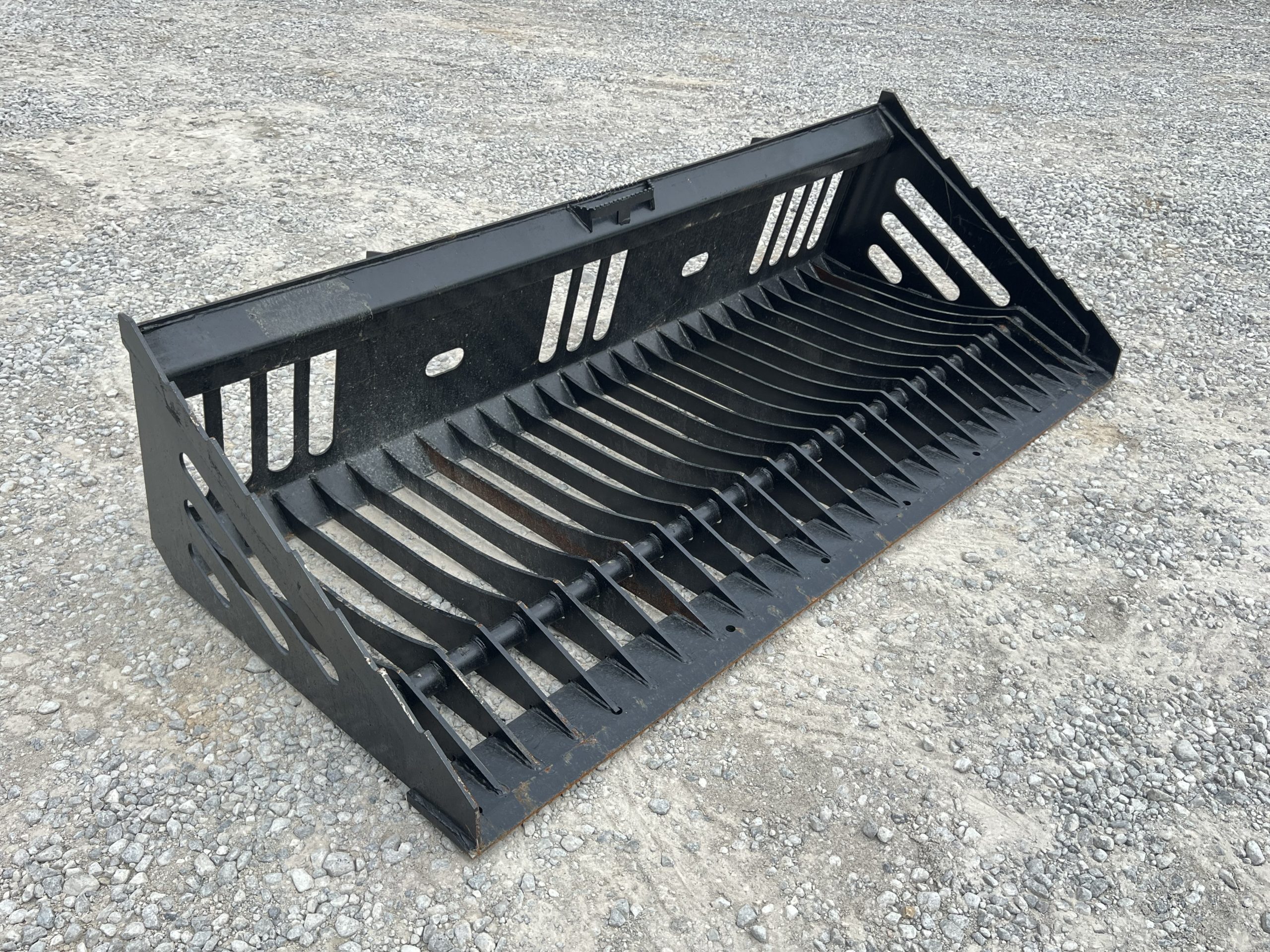 This is a new 84″ wide heavy duty skeleton / rock bucket. This attachment has the skid steer quick attach mounting system to work on a variety of wheeled and track loaders as well as newer tractors. This bucket makes sifting and sorting through a variety of soil types a breeze!