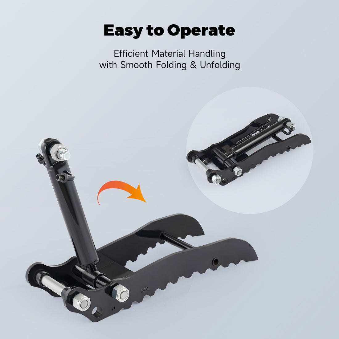 - Smooth Material Handling: Williams Tractors hydraulic thumb clip attachment, easy to fold and unfold, securely grasps and manipulates various materials like logs and rocks, streamlining material handling processes for increased efficiency.