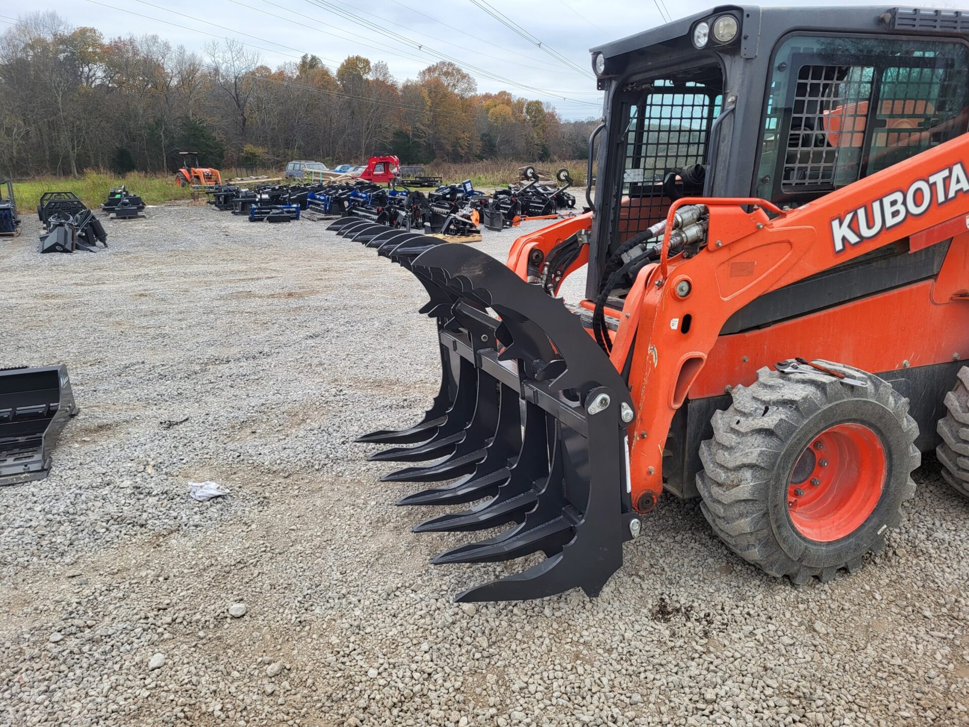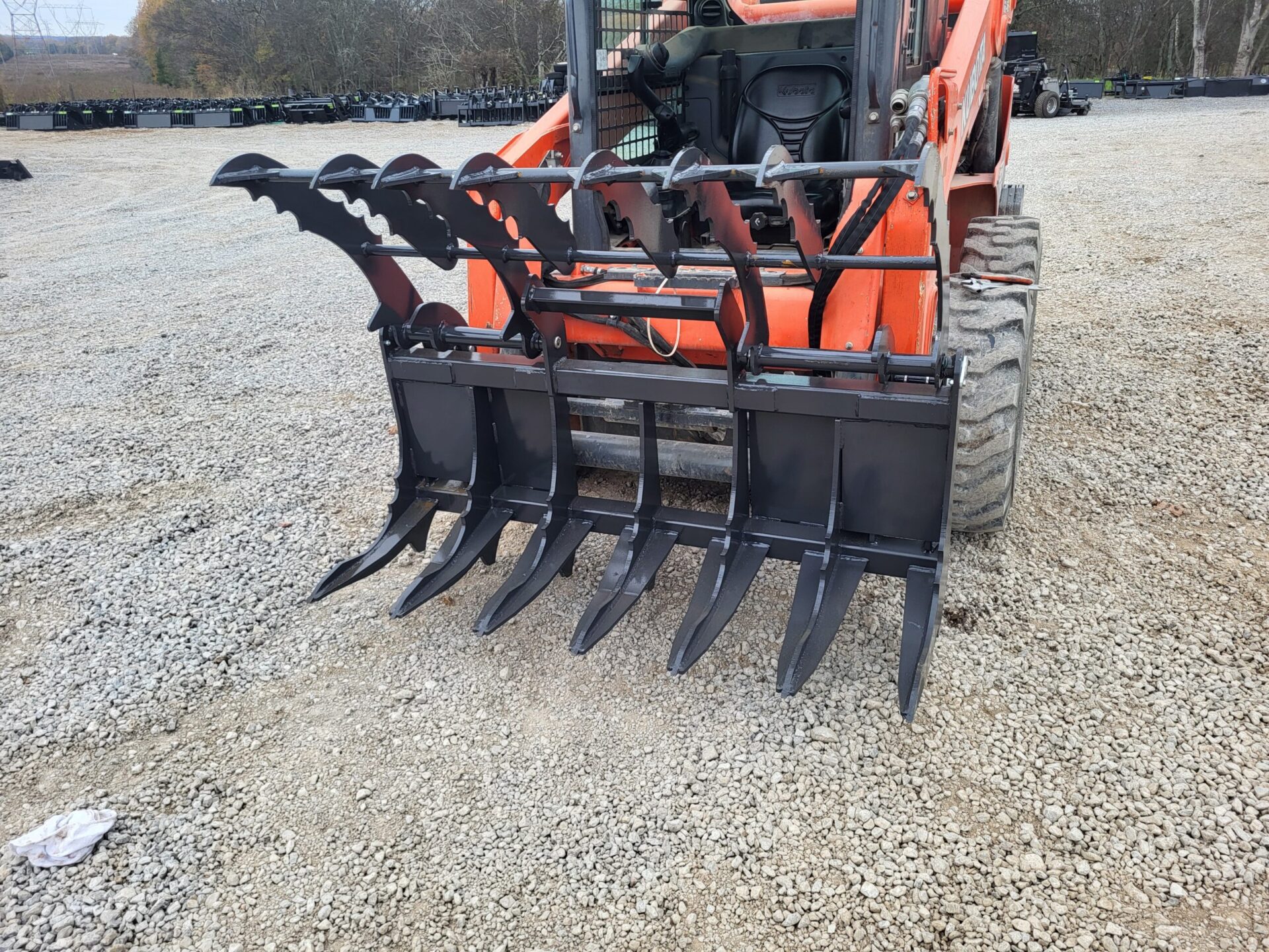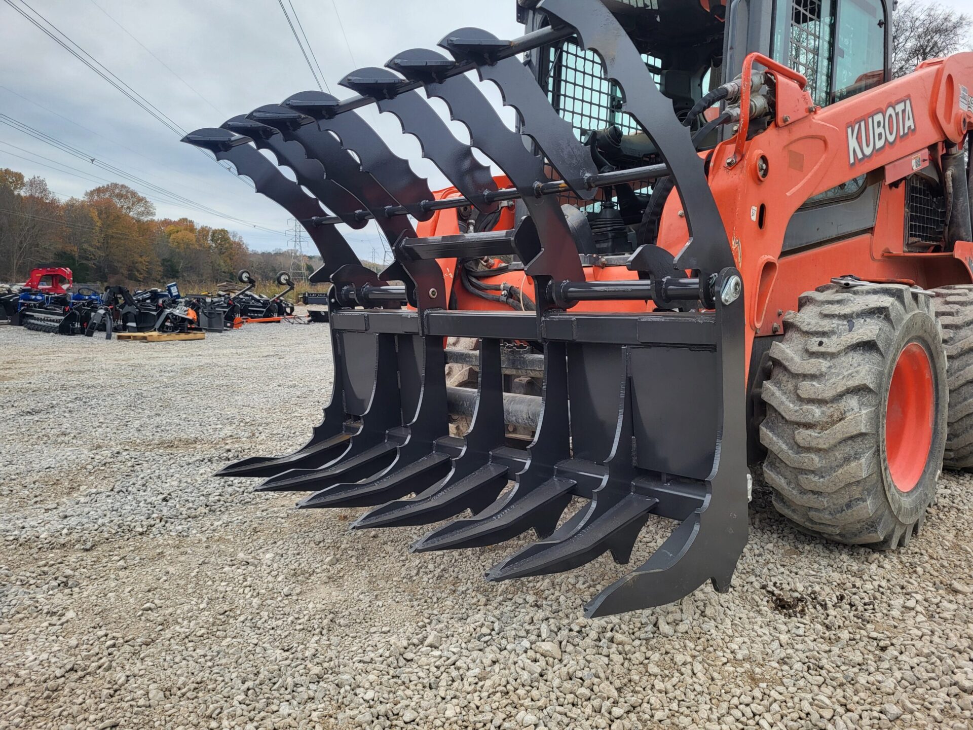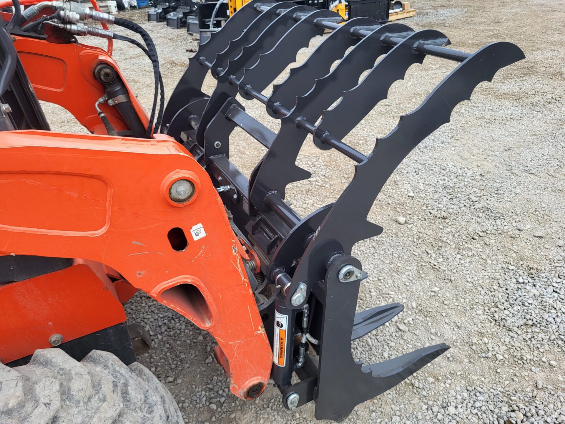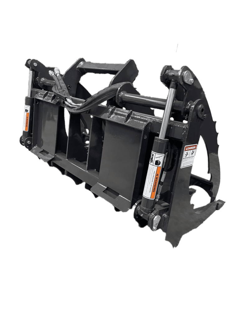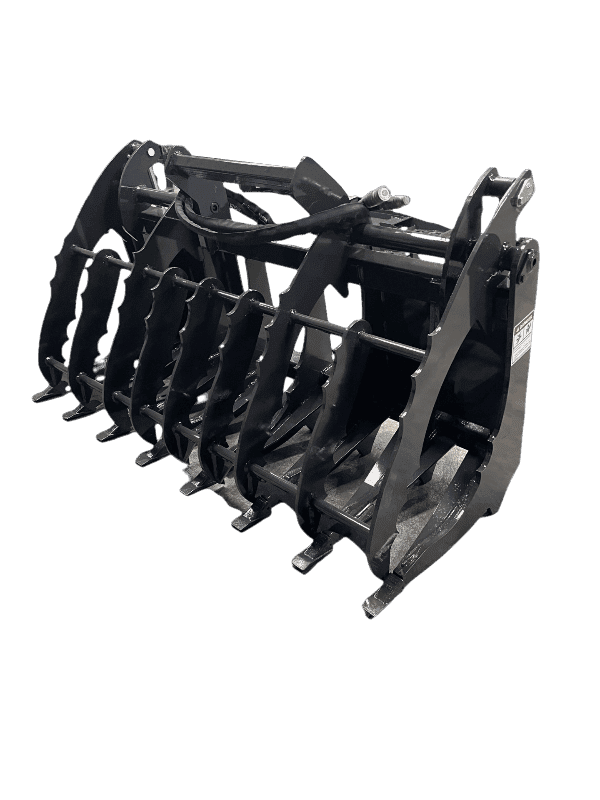 Built with high-strength steel, this attachment allows you to remove the toil and leave the soil at your job site with aggressive tine and grapple profiles that lock material in place and stabilize during transport. Replaceable tine teeth and metal backing to protect the hydraulic cylinders add further durability and longevity to this versatile product. The leading edge of the grapple travels in a range of motion that pulls material into the bucket area to optimize its large capacity for brush and debris.