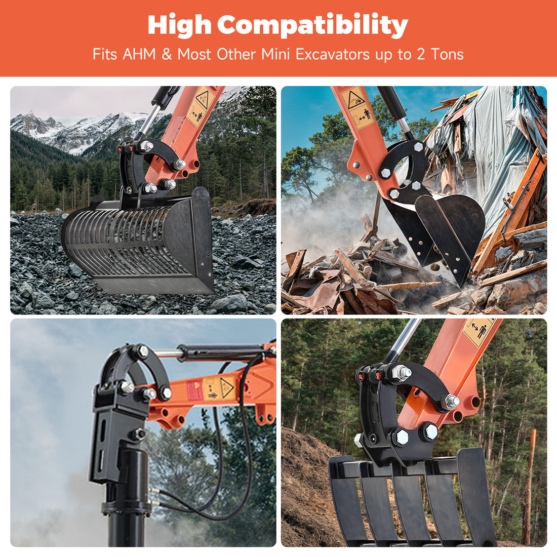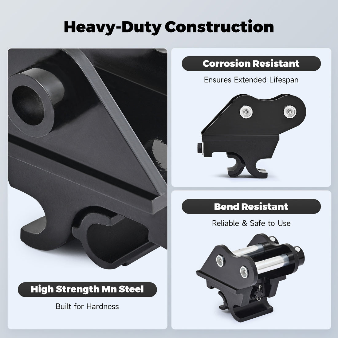 This quick hitch enhances your mini excavator’s versatility by enabling fast connection to multiple attachments. Ideal for construction, landscaping, demolition, agriculture, and more.