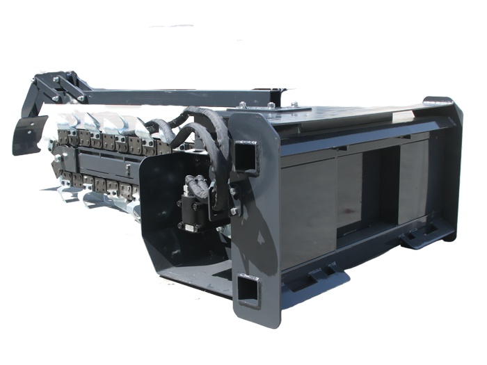 The Skid Steer Trencher excels at trenching in all types of ground conditions. Trench water or cable lines through dirt, rocky soil, gravel driveways. The trencher is available for 48″ digging depths, 8″ widths, and hydraulic flow 20-30 gpm. This motor is fully protected from dirt and debris making it as reliable as any other skid steer trencher on the market.