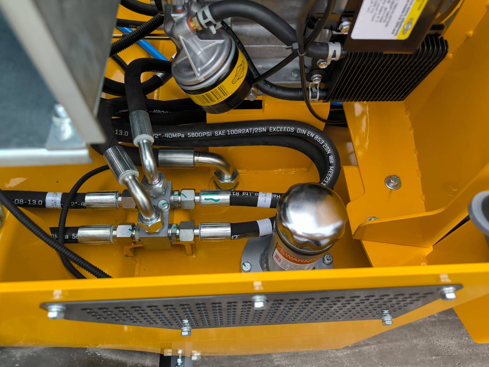 Features a 100L sprinkling water tank and a 60L hydraulic oil tank for extended operation.