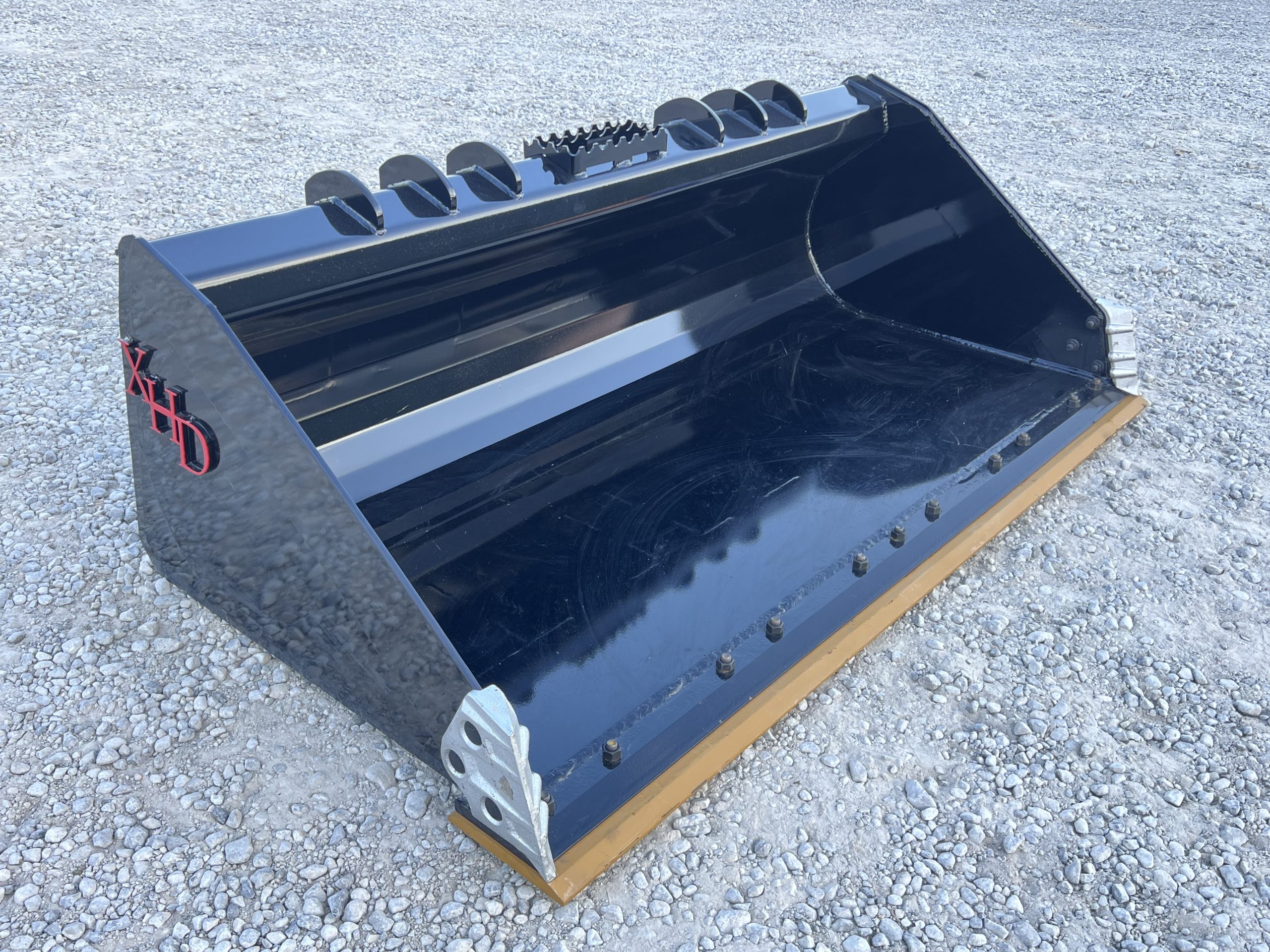 This brand-new XHD 73″ severe duty bucket is built for high-performance operation in the most demanding applications. It features a bolt-on reversible cutting edge and bolt-on side cutters for extended wear life and easy replacement.